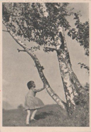 Kind spielt an Birke - ca. 1955