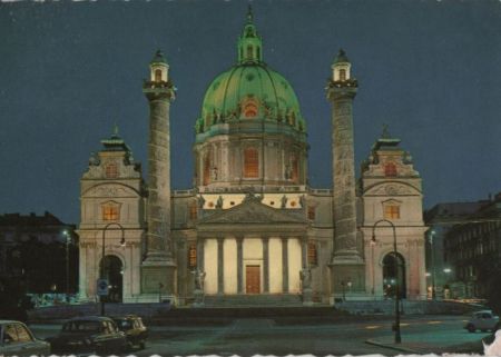 Titel: Österreich - Wien - Karlskirche bei Nacht - 1973