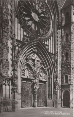 Titel: Olpe, Biggesee - Portal der Martinuskirche - 1957