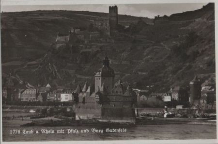 Titel: Kaub - mit Pfalz und Burg Gutenfels - ca. 1955